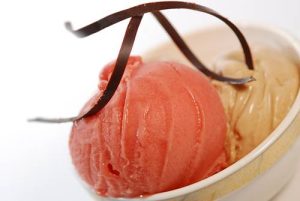Glaces: feito com ovos, leite e creme de leite. Nos sabores: baunilha, chocolate, praliné, passas ao rum, doce de leite e pistache.