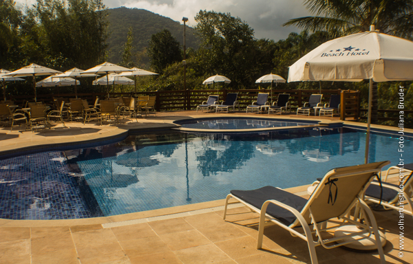 Das varandas do restaurante acessa-se o deck da piscina adulto e infantil, com sauna em frente e ligação com a praia. Além dessas, o hotel dispõe de piscina térmica indoor, com cascata e hidromassagem para relaxar nos dias e noites mais frescas, pois fica aberta até tarde.