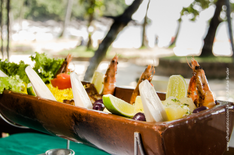 A sensação gostosa da brisa na varanda convidam para um almoço à beira mar ou jantar ao som do am. O serviço é atencioso e o cardápio além dos peixes e frutos do mar contempla também massas e pizzas. Segundo o simpático Bernardo, proprietário do restaurante, a especialidade mais tradicional do menu é o peixe servido na telha.