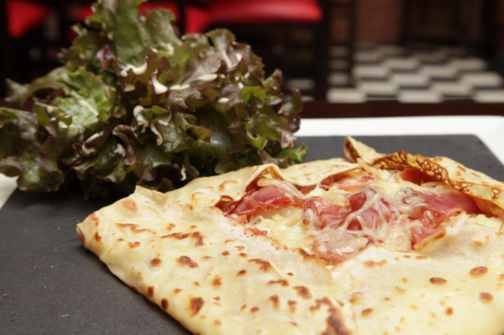 – presunto cru, cebola confitada, batata, queijo raclette (acompanha mix de folha_ – R$ 26