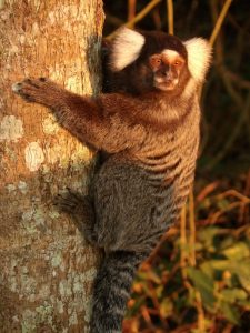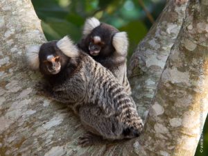 Sua aparência é de pequeno porte, preto com manchas brancas principalmente nas orelhas. Medem 30 cm em média e tem a cauda longa, o que aumenta seu equilíbrio para saltar entre as arvores em galhos por vezes altos, seu peso é de aproximadamente 250 gramas e também é conhecido como Sagui. Estes primatas vão viver na média 10 anos.