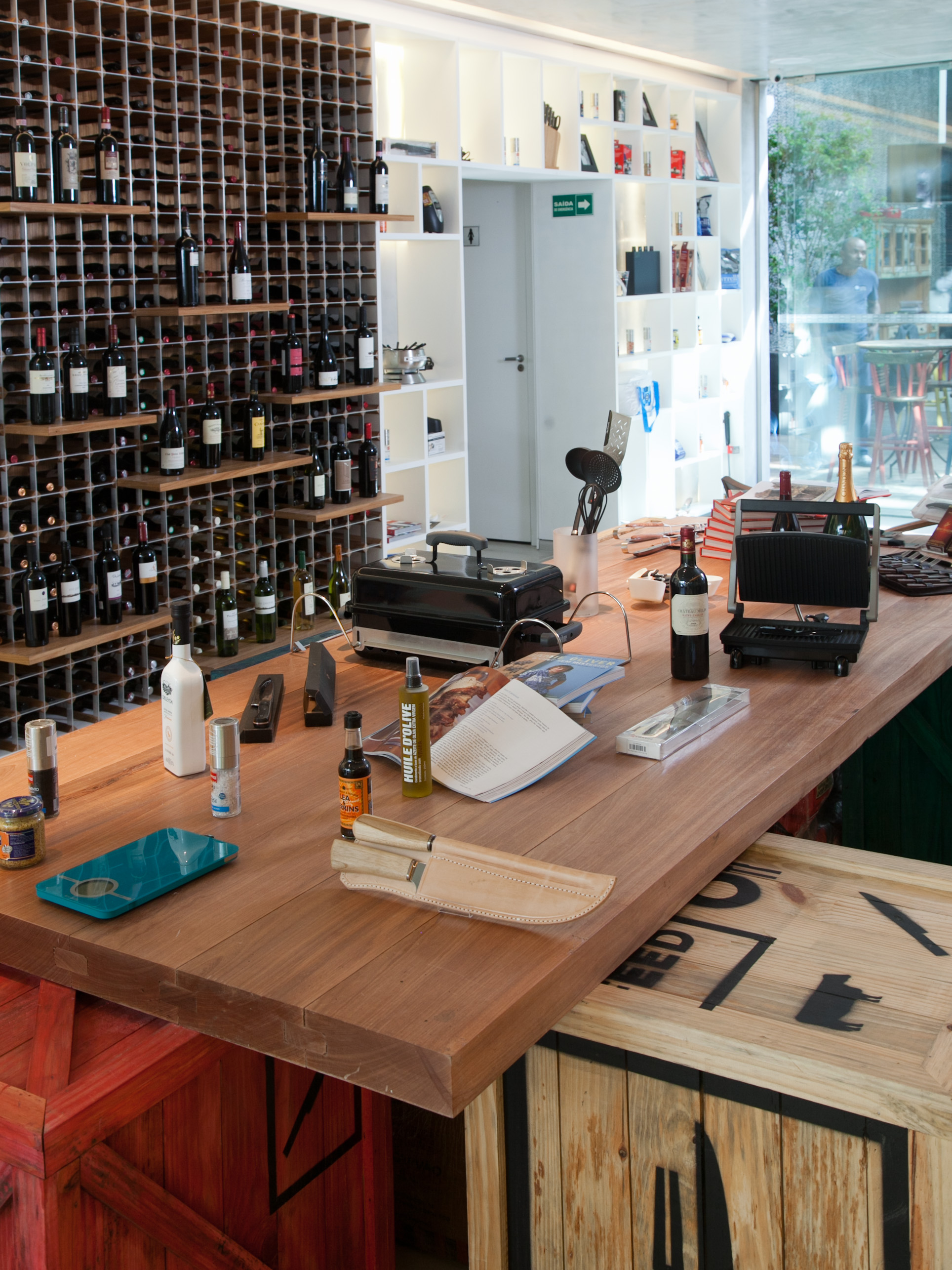 No fundo da loja, há uma volta à origem. “Voltamos à fazenda! Temos fogão a lenha, chapa, parrilla argentina, uma horta com temperos frescos, tudo à sombra de uma enorme figueira. “Nesse ambiente nós oferecemos aulas de cozinha, degustações e encontros gastronômicos.”