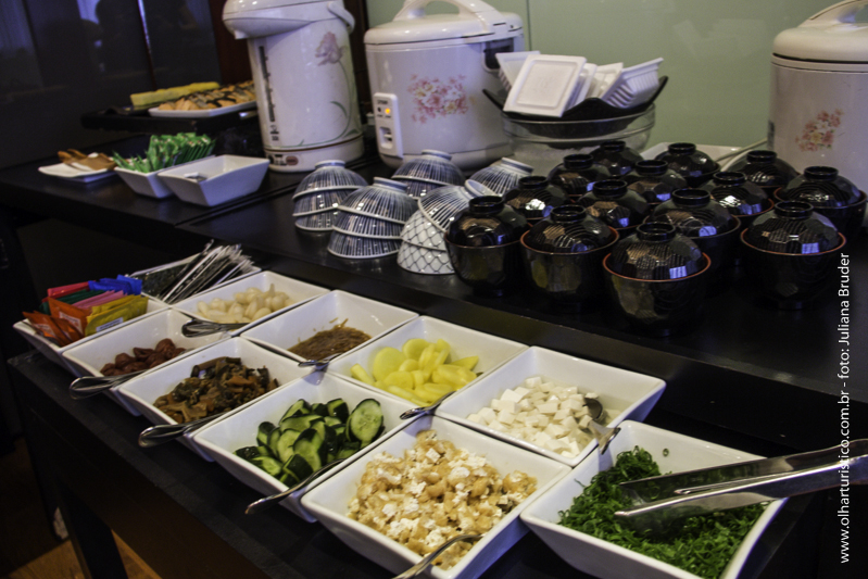 Mas esta seleção de receitas matinais também está à disposição dos outros hóspedes e apaixonados por esta gastronomia, ou curiosos sobre como se toma café da manhã do outro lado do mundo. Na verdade pudemos observar durante nossa visita que a estação especial do Café da Manhã Japonês representa grande diferencial para o restaurante, pois era a estação mais movimentada! Percebemos que visitantes de todas as nacionalidades acabam tendo vontade de degustar esta culinária pela manhã.