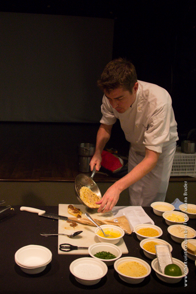 O talentoso chef, muito descontraído e com boa didática, ainda apresentou o Beiju, cujo preparo é realizado exatamente igual no Menu Degustação do DOM. A Tapioca, matéria prima do Beiju é um dos principais ingredientes utilizados nos pratos autorais de Alex Atala. Na verdade é o principal ingrediente proveniente do Nordeste Brasileiro em seu cardápio.