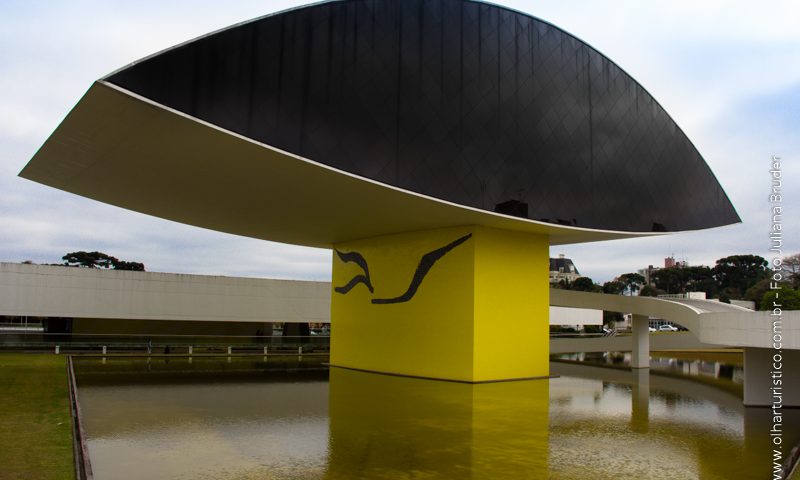 Sua estrutura em formato de Olho Gigante é marcante e ao mesmo tempo parece estar em movimento na paisagem urbana de Curitiba e sobre um espelho d’agua. A instituição tem como foco as artes visuais, a arquitetura e o design. Dos serviços disponíveis aos visitantes, além das exposições, no piso térreo estão o café, uma loja de merchandising do Museu com peças e livros muito interessantes e a chapelaria.