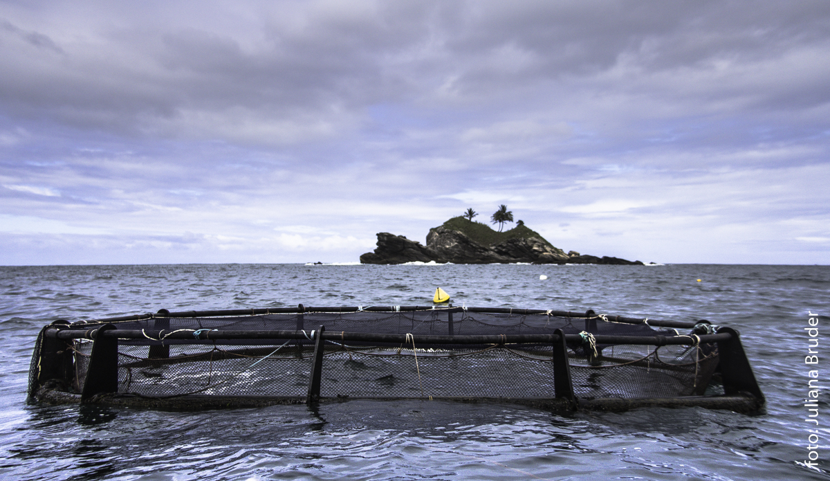 Os peixes são alimentados com ração específica e um pouco de sardinha também. Em novembro ele abre seu quiosque na praia onde comercializa os peixes que pega com o defeso, os mariscos da fazenda também local e quem sabe os peixes Bejupirá maiores.