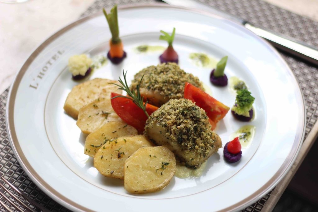 – Poisson du Jour (filé de pescada amarela envolta na massa folhada com espinafres)