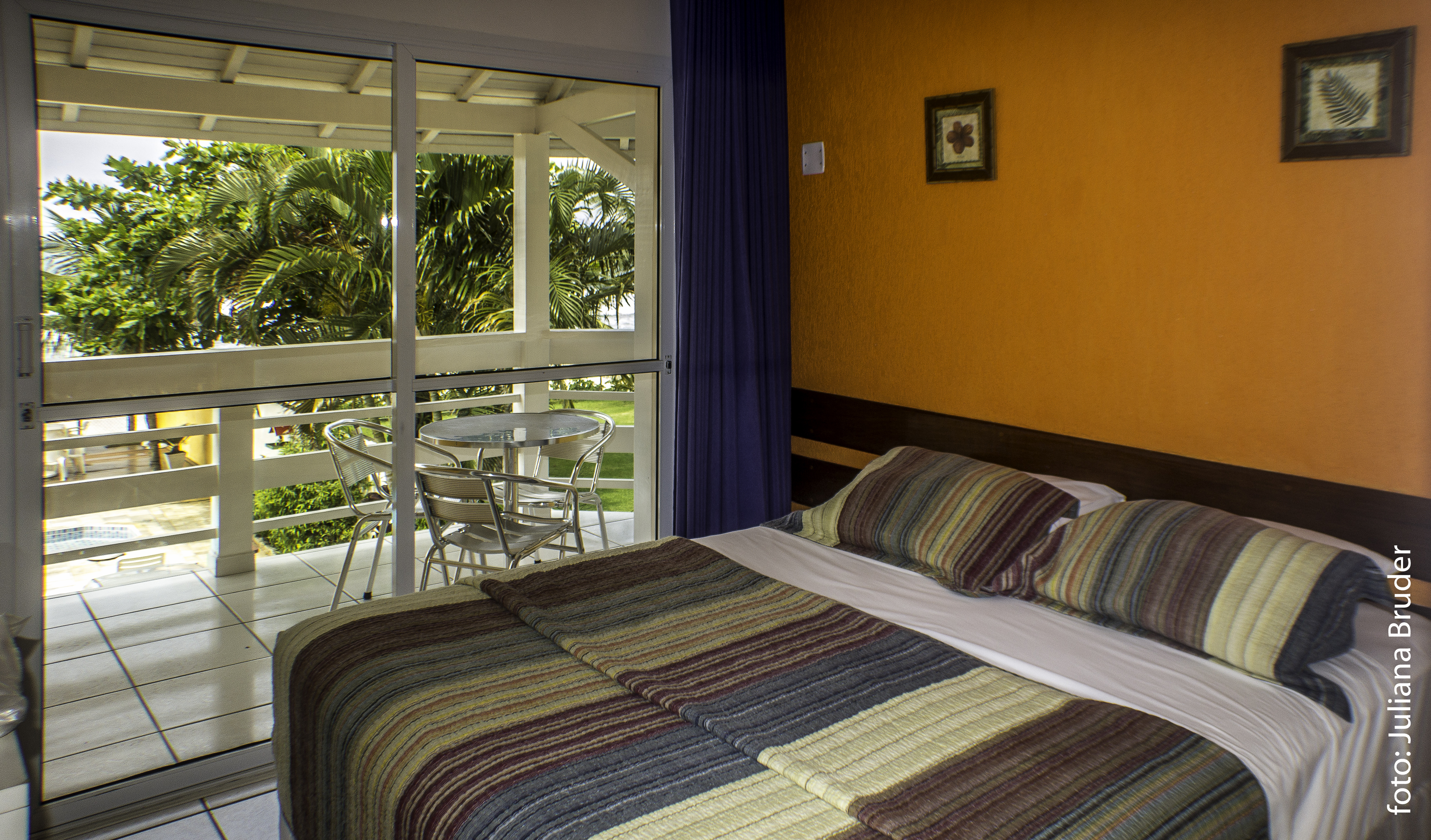 Os quartos podem ser espaçosos, com TV’s LCD, canais a cabo, ar condicionado e camas confortáveis. As unidades podem conter mini copa, podem ser de frente para o mar, com varanda ou acomodar apenas um casal, de frente para a piscina e a praia.