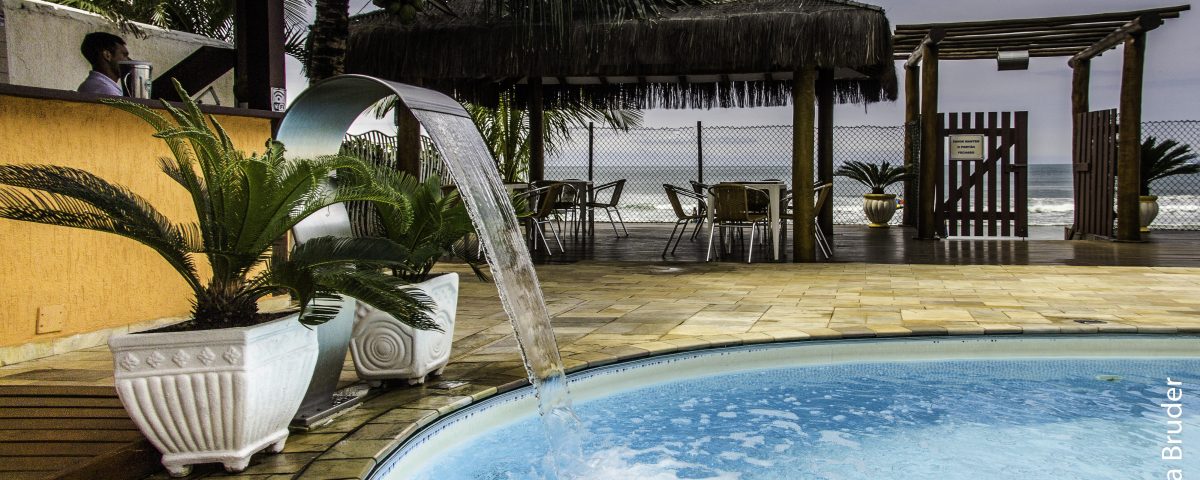 Na hora da praia os hóspedes contam com cadeiras e guarda sóis colocados na faixa em frente à pousada, além de plaquetinha para solicitar o serviço de bar, que inclui porções, drinks e até refeições.