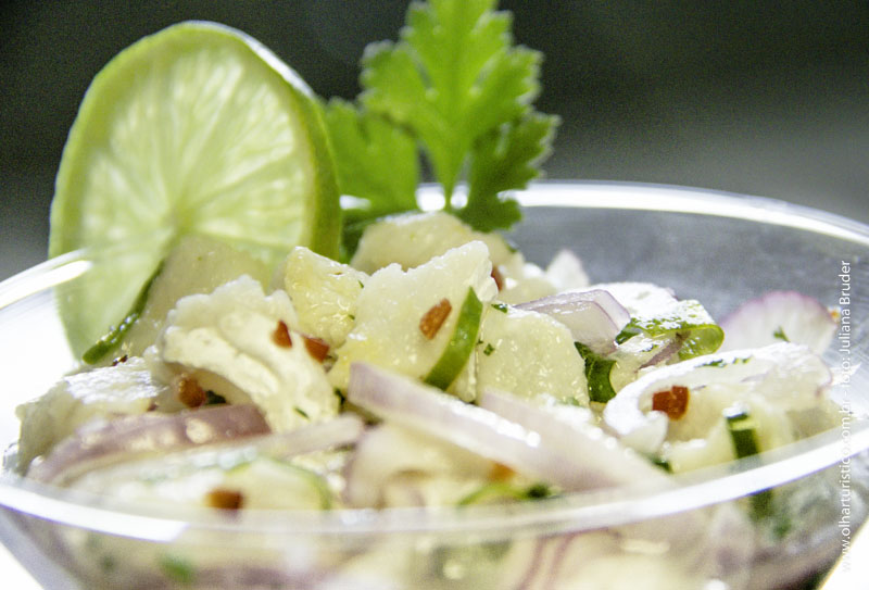 O aperitivo presente em praticamente todas as cozinhas sul americanas da Costa do Pacífico, feito de peixe fresco é servido em uma taça alta, que deixa a mostra o típico molho Leche de Tigre, mas com uma pitada de Maracujá para atribuir maior frescor e brasilidade à entrada. O resultado é mais aroma e sabor diferenciado.